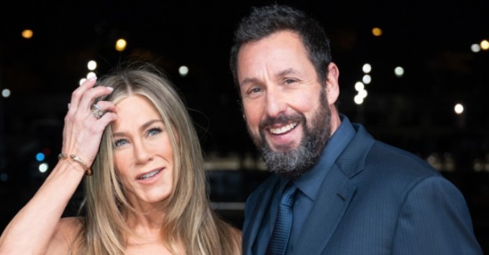 Jennifer Aniston and her boyfriend Jim Curtis enjoyed a rare evening together — or rather, as a foursome: the couple joined Adam Sandler and his wife Jackie on