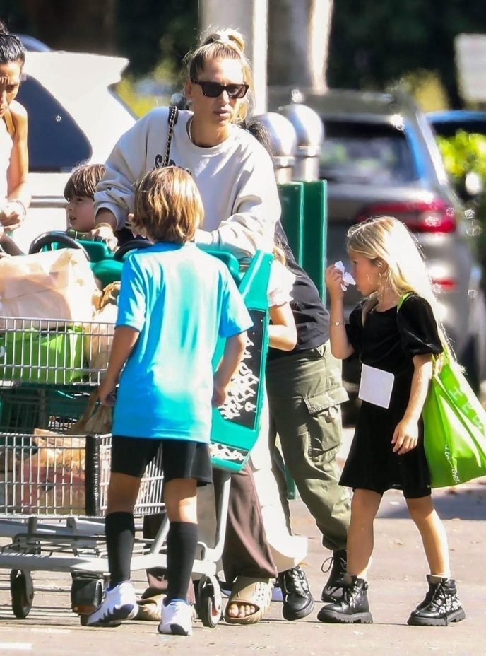 Kournikova, the longtime partner of Enrique Iglesias, was photographed leaving a shopping center with their three children — two daughters and a son — in tow, bags in hand and looking casual.