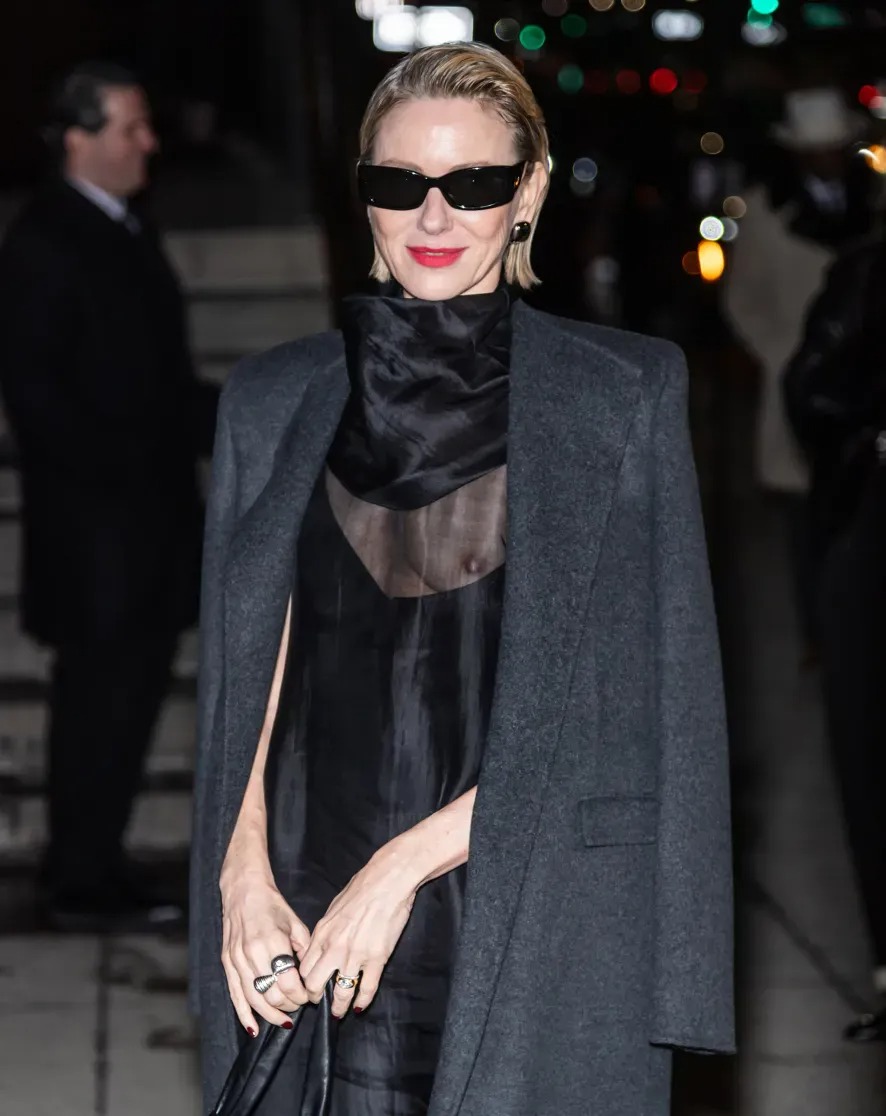 Naomi Watts made one of the most talked-about appearances of New York Fashion Week, and she didn’t try to soften the impact. The 57-year-old actress arrived at a major runway show wearing a black dress that exposed her chest, layered under a gray coat that did little to mute the effect.
