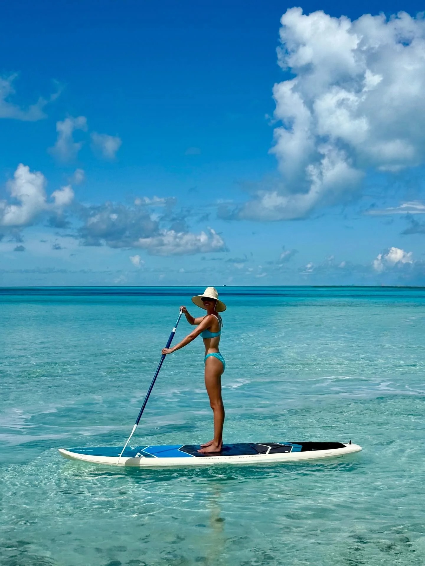 One photo shows her balancing on a paddleboard, gliding across calm water under the sun. There’s no red carpet, no formal setting — just open sky, sea breeze, and a confident smile. The images quickly circulated, drawing reactions from fans who noted her toned figure and effortless vacation style.